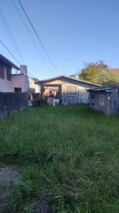 Terreno possui uma casa de madeira na frente e outra casa de alvenaria nos fundos.